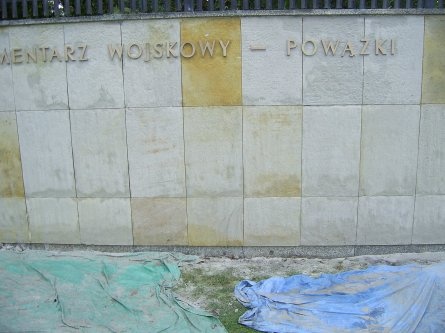 Mur Cmentarza Wojskowego na warszawskich Powązkach po oczyszczeniu